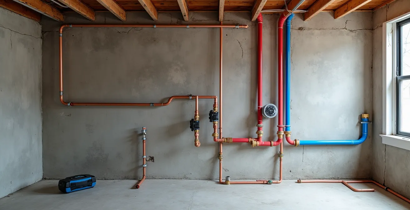 L’aménagement d’un sous-sol ou l’ajout d’une salle d’eau est un projet exaltant pour tout propriétaire montréalais. C’est l’occasion de transformer un espace brut en une pièce de vie fonctionnelle, augmentant à la fois le confort et la valeur de sa propriété. Dans cet élan, la plomberie apparaît souvent comme un simple puzzle de tuyaux à assembler. Beaucoup se concentrent sur le choix des matériaux, comme le PEX flexible ou le cuivre traditionnel, en pensant que la technique se limite à réaliser des connexions étanches. Cette vision, bien que compréhensible, omet l’essentiel : les règles invisibles qui régissent l’écoulement de l’eau et la sécurité de l’installation.